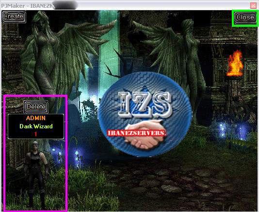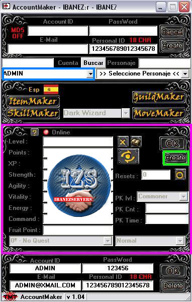 Para crear un nuevo personaje debemos seleccionar la cuenta y click en create en el menu inferior